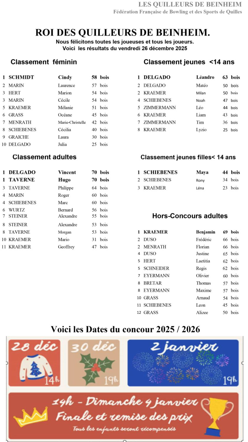Roi des Quilleurs 2013 / 2014 Classement final Photo